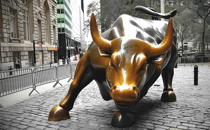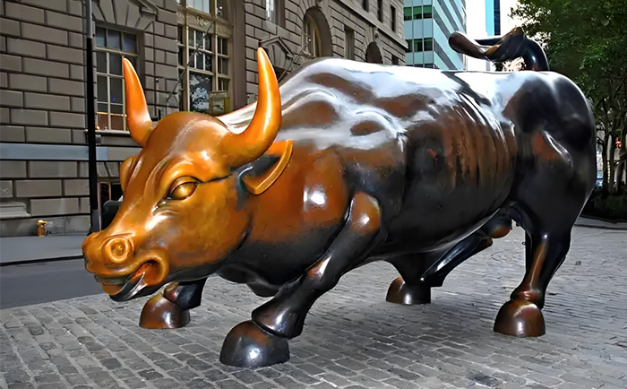 紐約曼哈頓的華爾街銅牛,無(wú)疑是全球最具影響力的銅牛雕塑之一。這尊由意大利裔藝術(shù)家阿爾圖羅?迪?莫迪卡創(chuàng)作于 1989 年的作品,重達(dá) 3.2 噸,以肌肉虬結(jié)的軀體、昂首前沖的姿態(tài),成為 “牛市” 的象征。其誕生背景頗具傳奇色彩:在 1987 年美股崩盤后,藝術(shù)家自掏腰包 36 萬(wàn)美元鑄造銅牛,連夜安放在紐約證券交易所前的圣誕樹(shù)下,寓意 “經(jīng)濟(jì)復(fù)蘇”。盡管初期因 “非法放置” 引發(fā)爭(zhēng)議,但民眾對(duì)它的熱愛(ài)最終讓其落戶于百老匯大街,成為紐約的城市名片。2009 年,中國(guó)國(guó)旗首次在銅牛旁升起,見(jiàn)證了中美關(guān)系的深化;而 2019 年的搬遷計(jì)劃,則引發(fā)了全球?qū)ζ湮幕瘍r(jià)值的再思考。這尊銅牛不僅是金融市場(chǎng)的晴雨表,更傳遞著逆境中昂揚(yáng)向上的信念。