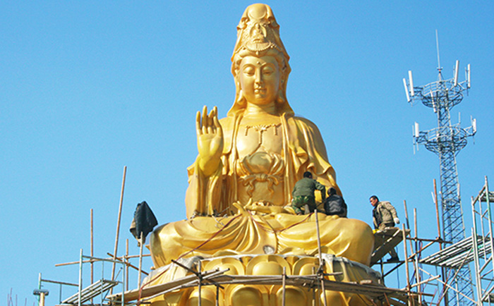 我廠專業(yè)致力于銅佛像雕塑設(shè)計、制作、安裝,配以嫻熟精致的唐彩工藝、貼金工藝等多種表面裝飾工藝技術(shù),輔以佛法教理,誠心雕塑,用心制作,所塑諸佛、菩薩圣像皆如法如儀,相好莊嚴,讓瞻仰者生歡喜心和恭敬心。